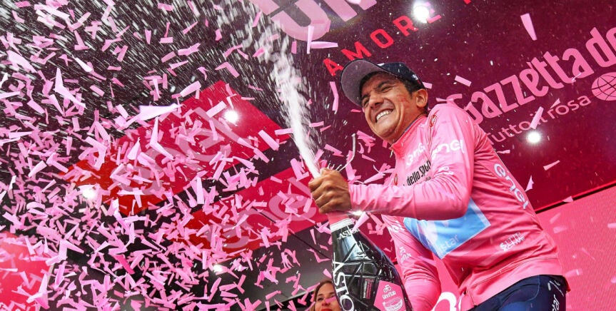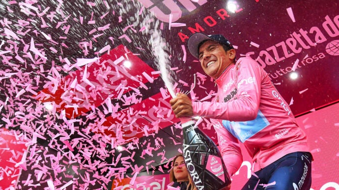 Carapaz, primer ecuatoriano en vestir la camiseta rosa en la historia del Giro, suma además un minuto y 47 segundos de ventaja sobre el italiano Vincenzo Nibali (Bahrein), tercero, con el que fue protagonista de un gran ataque en la última subida al Civiglio.