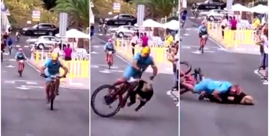 Durísimo atropello en el transcurso de una prueba ciclista celebrada en Frontera, en la isla de El Hierro. Un corredor ha atropellado a una espectadora en el evento después de que la mujer cruzara la vía cuando el deportista estaba en pleno sprint.