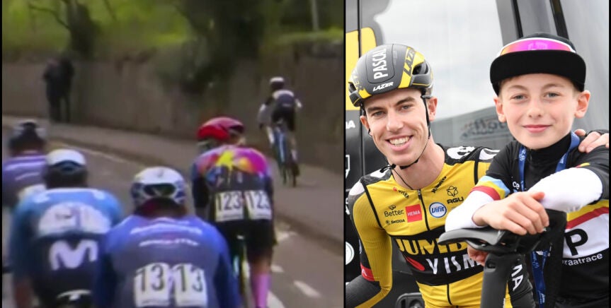 En la penúltima jornada del Tour de Gran Bretaña se vivió una imagen de esas que emocionan. Un niño ciclista hizo un sprint brutal para, durante varios metros, correr con sus ídolos.