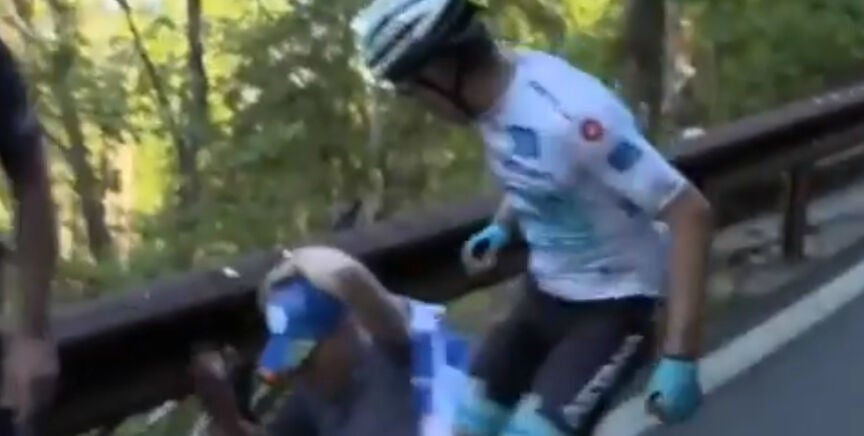 'Superman' López se lía a puñetazos con un aficionado que le tiró de su bici en el Giro de Italia