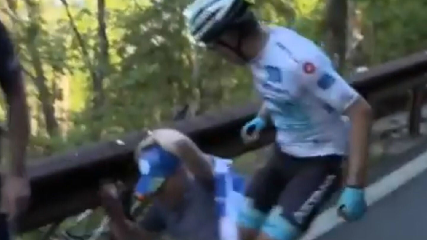 Imagen pocas veces vista la que se vivió en la etapa 20 del Giro de Italia. Miguel Ángel López, del Astana, golpeó repetidas veces a un aficionado que le derribó en una bajada a pocos kilómetros del final. El colombiano perdió por dicho suceso toda opción de alcanzar la zona noble de la clasificación.