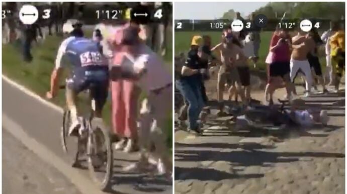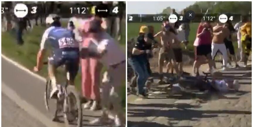 Vergonzoso: un aficionado tira al suelo a un ciclista en la París Roubaix