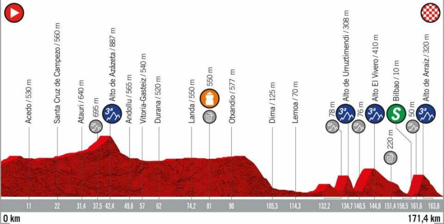 Antes, el pelotón tendrá que pasar por otro puerto de tercera categoría en el alto de Azázeta (887 metros). Un recorrido exigente que llevará a un final de etapa en Bilbao que seguro será emocionante.