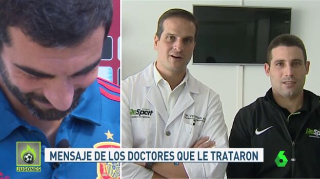 Una de esas piedras fue la rótula de su rodilla izquierda, que desde febrero le mantuvo tres meses fuera de los terrenos de juego y le hizo "tocar fondo". "Fue muy duro y mentalmente te genera ansiedad", confiesa el veterano central a Julio Suárez, al tiempo que el reportero aprovecha para enseñarle un mensaje de las dos personas que más horas estuvieron con él durante las semanas de rehabilitación: su médico, el doctor Abat; y su fisio, Grabiel Planells. "Amigos para toda la vida que se ganan con una lesión", como dice Albiol.