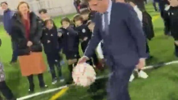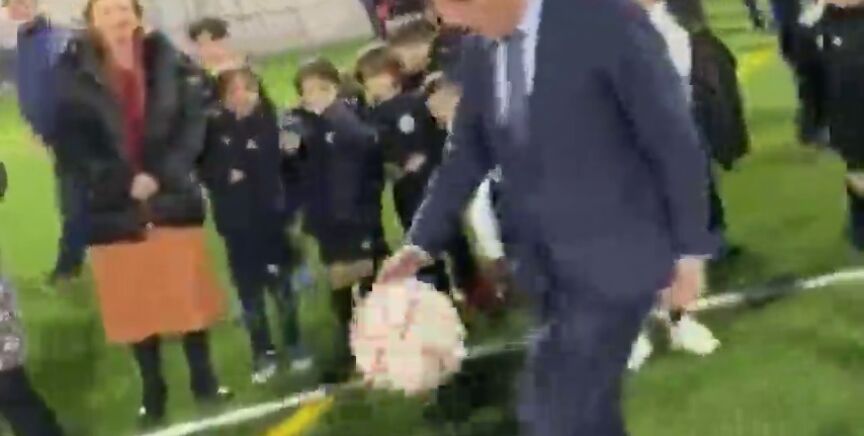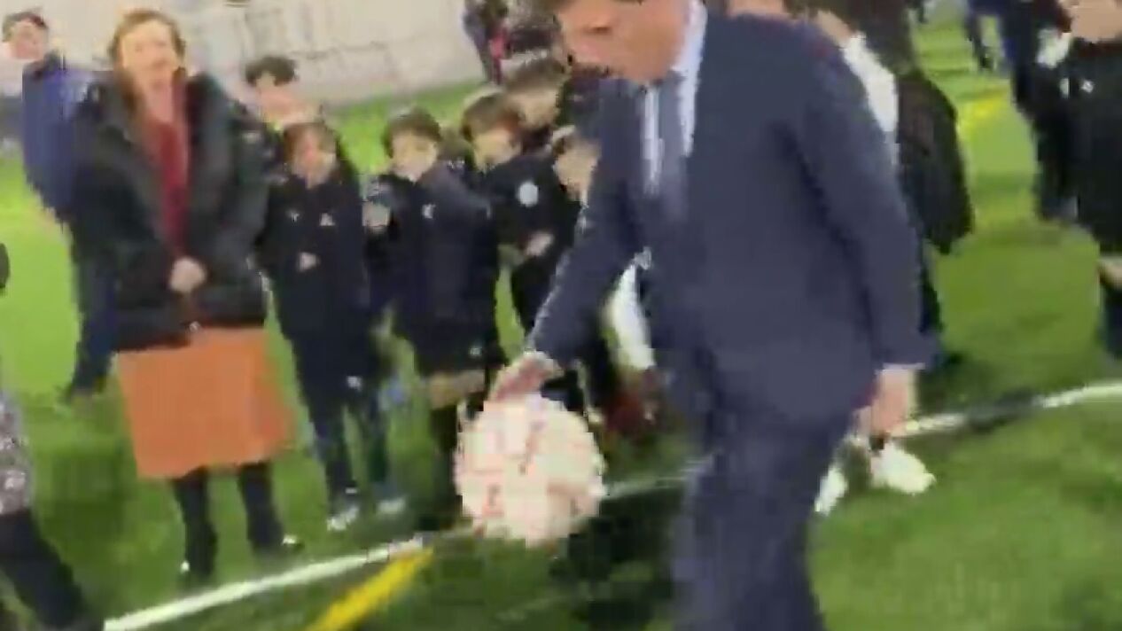 - Almeida da un balonazo a un niño al inaugurar un campo de fútbol en Madrid