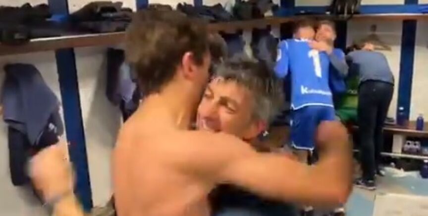 La fiesta en el vestuario de la Real Sociedad tras eliminar al Real Madrid fue tremenda. El técnico, Imanol Alguacil, fue el más eufórico. Abrazando a todos y cada uno de sus jugadores.