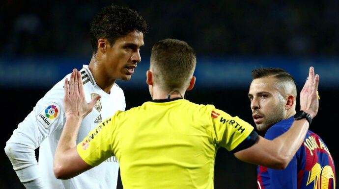 El Barcelona - Real Madrid tuvo un momento de gran polémica en la primera parte. Fue alrededor del minuto 20, cuando Lenglet propinó un plantillazo a Varane que ni el árbitro ni el VAR vieron. Los madridistas pidieron penalti.