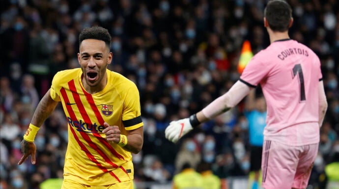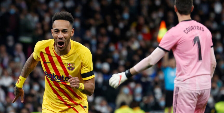 Aubameyang ha caído de pie en el Barça. El delantero, ex del Arsenal, se lució en el Santiago Bernabéu con dos goles y una asistencia ante un Real Madrid sumido en el caos sin Benzema.