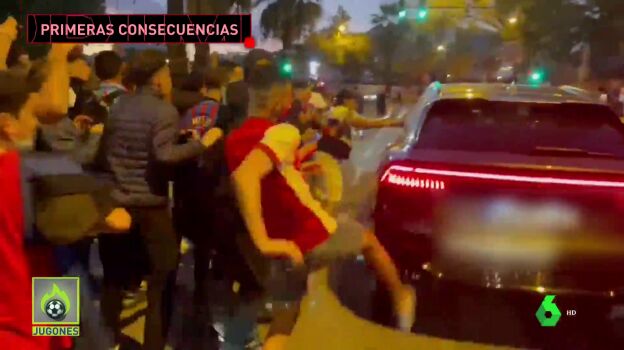 El vehículo fue zarandeado entre insultos. Golpes y patadas. Instantes de mucha tensión para Koeman y su mujer. Unos actos que ya ha tenido consecuencias en el Barça.
