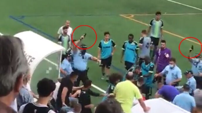 Integrantes y aficionados de ambos equipos se enzarzaron en una pelea hasta que los agentes tomaron cartas en el asunto... de una manera un tanto drástica.