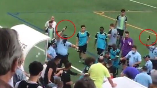 El encuentro de la regional portuguesa entre Olímpico de Montijo y Vitória de Setúbal B terminó con la policía interviniendo en una brutal pelea sobre el terreno de juego.