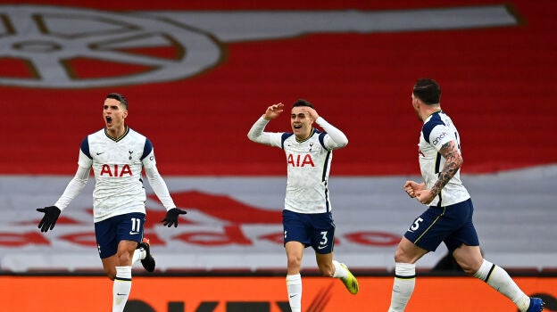 El jugador del Tottenham marcó un golazo en el derbi de Londres frente al Arsenal. El lateral izquierdo español se llevó las manos a la cabeza tras la genialidad del futbolista argentino, en la derrota de los 'Spurs' por 2-1.