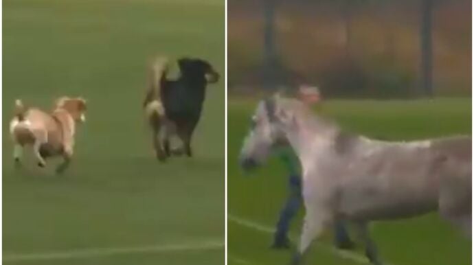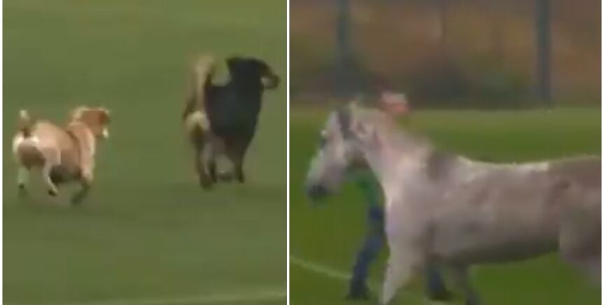 Cuando uno piensa en un espontáneo al uso se imagina a un fanático loco por conocer a su ídolo, un hooligan borracho celebrando un gol o activistas reivindicando su causa, aunque algunas veces los partidos también pueden ser interrumpidos por la aparición en el terreno de juego de animales. Pues bien, en este caso han sido tres los animales que se han colado en medio de un encuentro: dos perros... ¡y un caballo!
