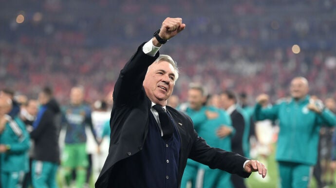 Ancelotti recuerda convertirse en el primer entrenador en ganar 4 Copas de Europa: "Estoy muy orgulloso de todo eso. Ha sido una temporada increíble tanto para mí como para el Real Madrid. Naturalmente, volver al Real Madrid ha sido muy gratificante para mí. Para mí es importante seguir siendo el entrenador de este gran club y de este gran equipo".