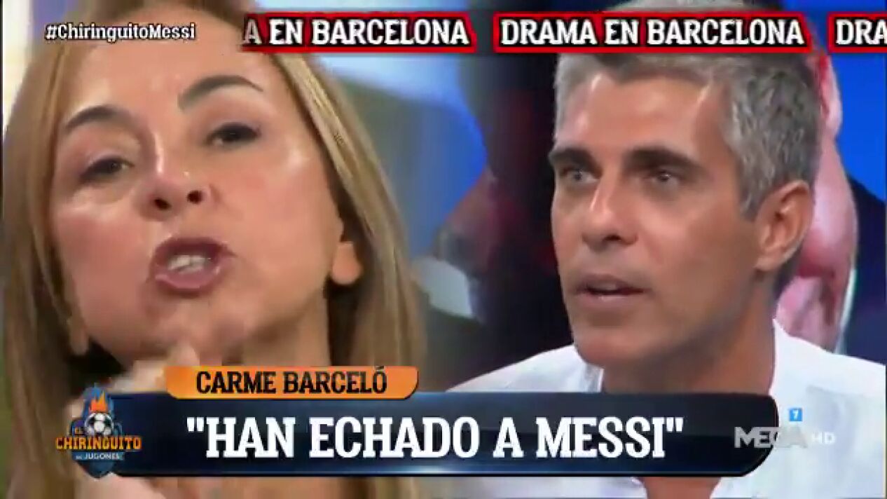 "La gente está en un duelo que no ha hecho más que empezar". Ese fue uno de los mensajes que lanzó en 'El Chiringuito' Carme Barceló, analizando la marcha de Leo Messi del FC Barcelona. Cree la tertuliana que al argentino "le han echado".