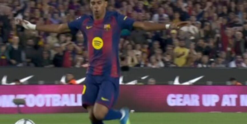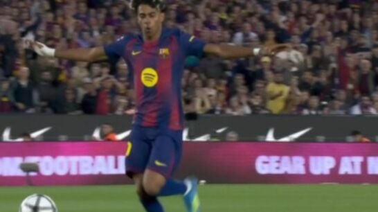 El extremo blaugrana puso el 3-1 en el minuto 88 para erradicar cualquier opción que tuviera el Espanyol de empatar el encuentro. Justo antes de marcar, dio la sensación de que Lamine ya celebraba el tanto.