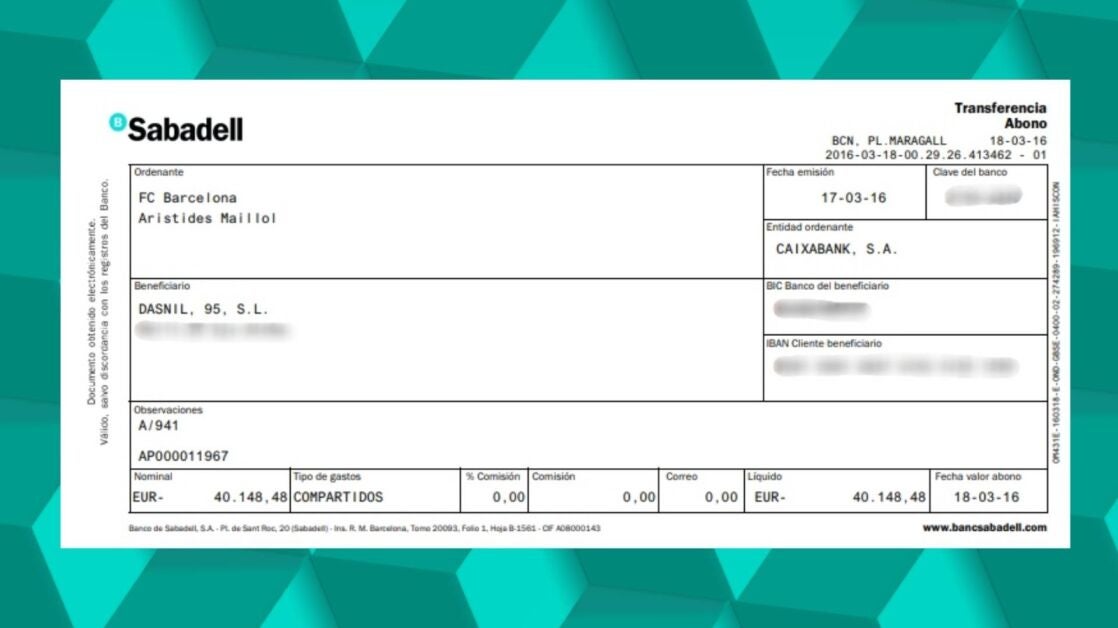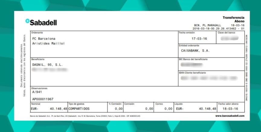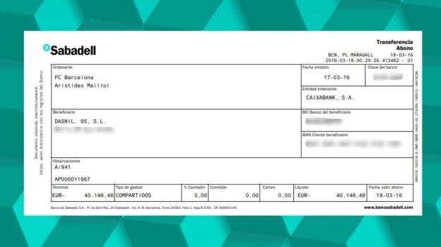 En la documentación aparecen un total de 24 cheques, fechados entre el 16 de febrero de 2016 y el 18 de julio de 2018, del Barça con periodicidad mensual a la empresa Nilsad SA, propiedad de Enríquez Negreira, movimientos de cuentas, pagarés y cheques de hasta 190.000 euros entre cuentas en las que figuran como titulares y autorizados Negreira; su hijo, Javier Enríquez Romero; su secretaria, Concepción Díaz; y su juez de línea, José Martínez Alfonso.