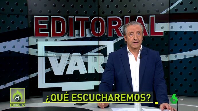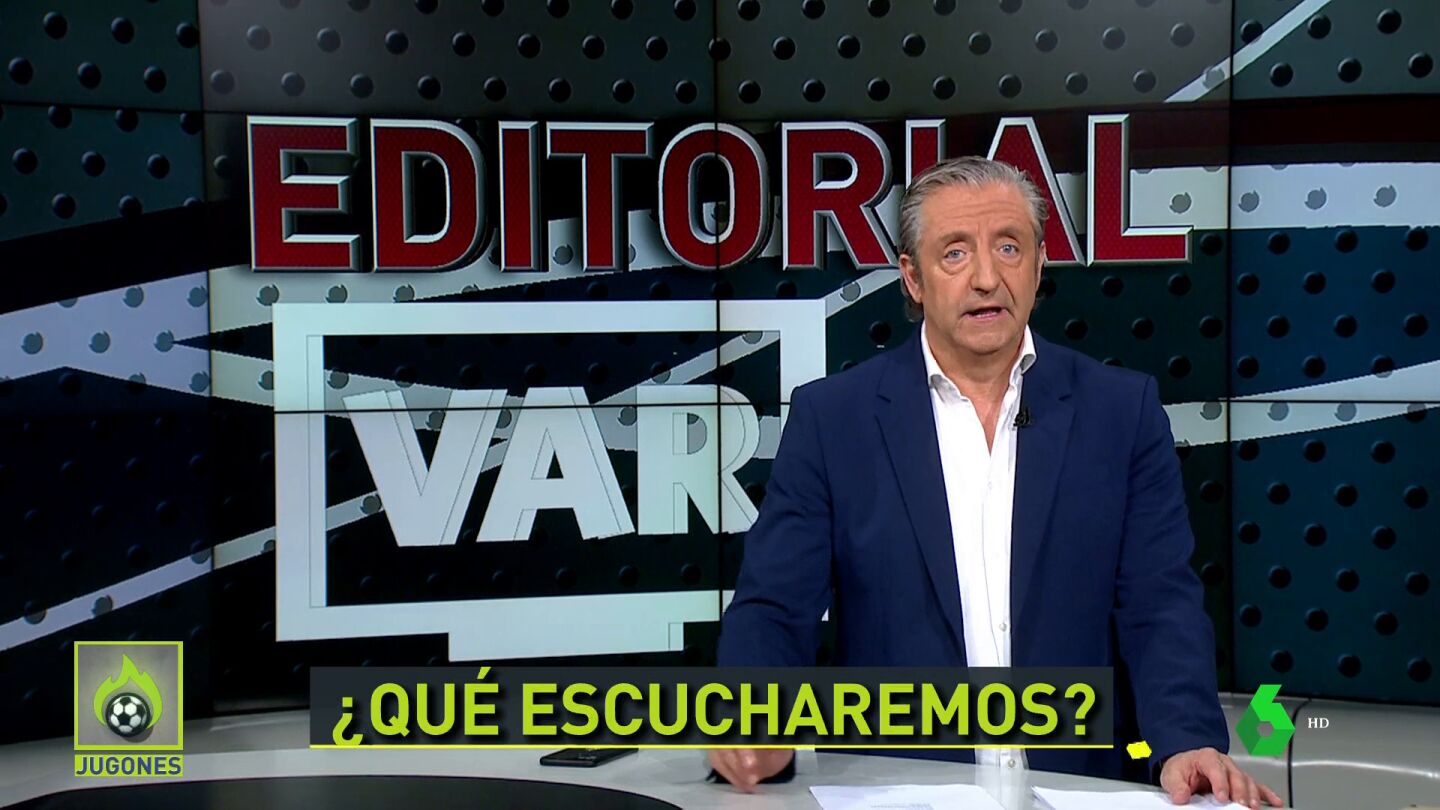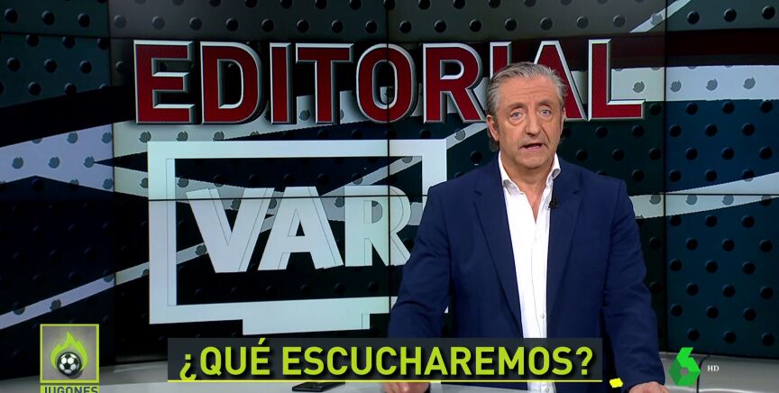 "A partir de enero escucharemos los sonidos del VAR. Pero, ¿qué sonidos? ¿Se escucharán las conversaciones en directo? No. ¿Se escuchará al VAR rectificando al árbitro? No": así de contundente ha arrancado Josep Pedrerol su editorial en 'Jugones'.