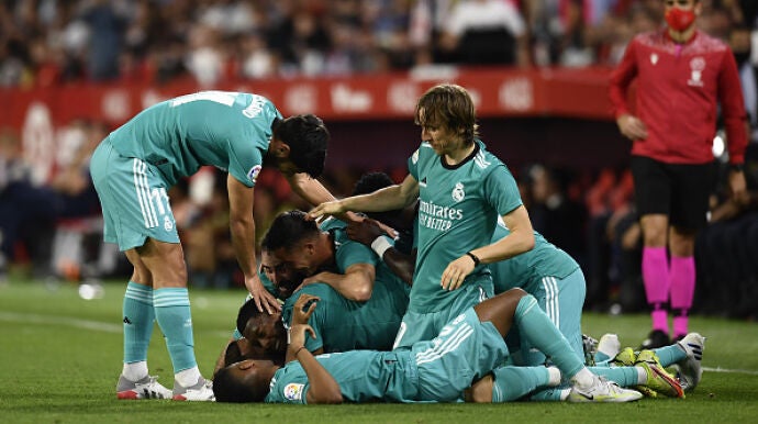 El club blanco puede llegar hasta su título liguero número 35 a través de diferentes caminos. El más seguro, sin depender de los resultados de sus seguidores más inmediatos, sería sumando siete puntos de los 18 posibles en las últimas seis jornadas. Osasuna, Espanyol, Atlético de Madrid, Levante, Cádiz y Betis serán sus rivales.