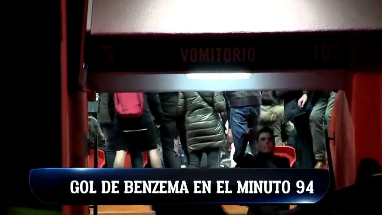 De la euforia al hundimiento: así vivió Mestalla el gol de Benzema en el 94'