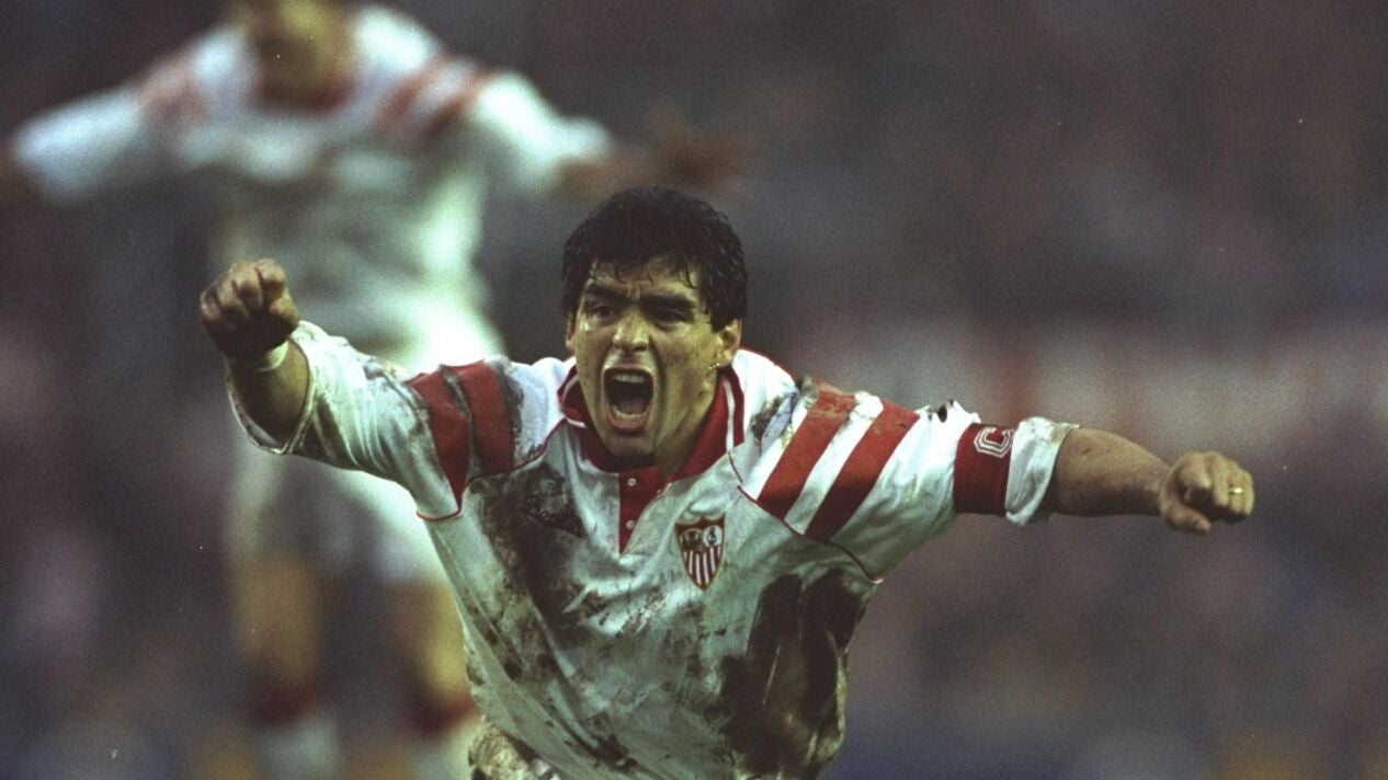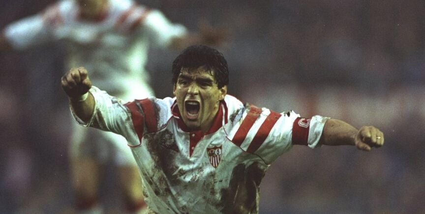 Con Carlos Salvador Bilardo en el banquillo de Nervión, el Sevilla pagó 750 millones de pesetas (alrededor de 6,5 millones de euros) para que 'el Diego' volviese a jugar a la liga española (ya militó en el Barça entre 1982 y 1984).