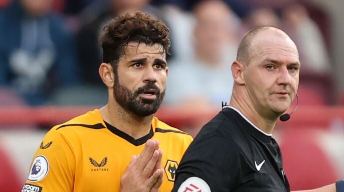 Wolves y Brentford empataron a uno en un partido marcado por la expulsión por roja directa de Diego Costa tras darle un cabezazo al central del Brentford Ben Mee.