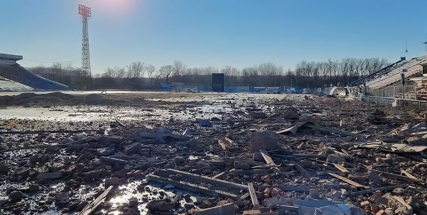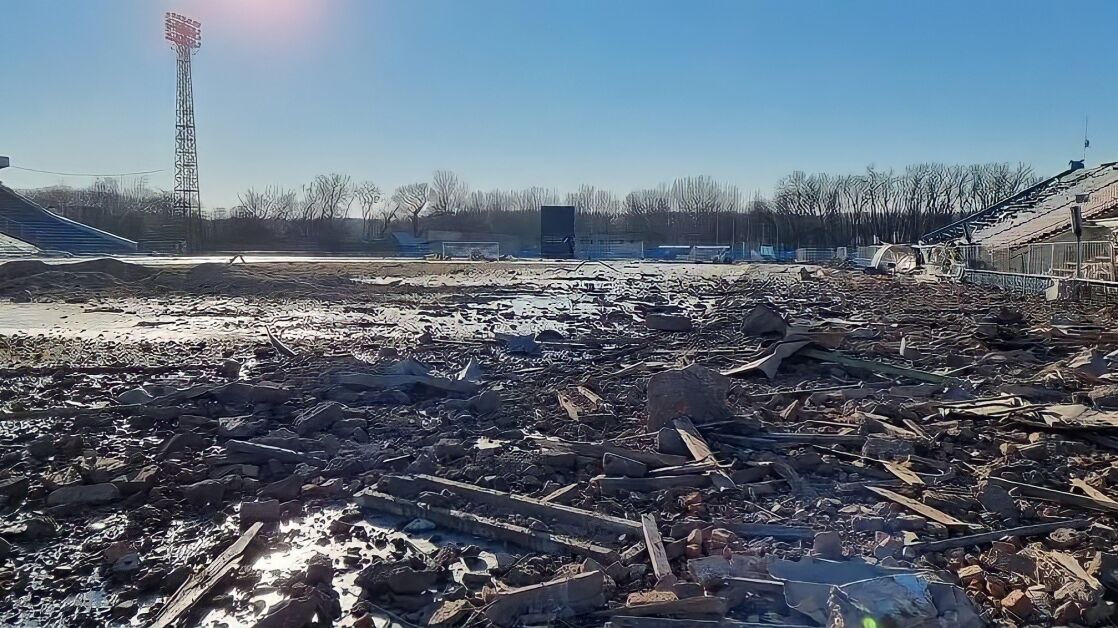 Ya no queda nada de lo que había. Muros, gradas, vestuarios, el césped, la barra del bar... todo ha sido reducido a un montón de escombros. Además, el estadio también es sede de la selección femenina de Ucrania, que tenía previsto disputar un encuentro el próximo mes de abril.