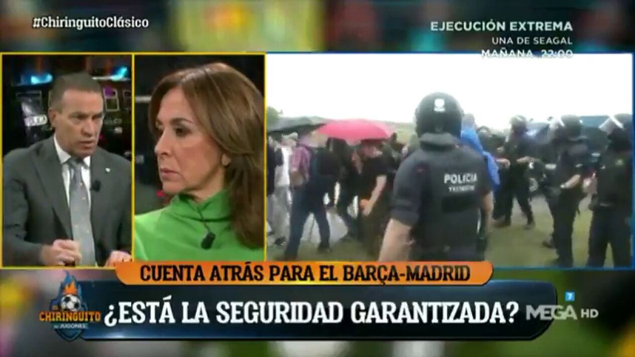 El encontronazo entre Paco Buyo y Carme Barceló por la seguridad en el Clásico: "¿Una pancarta atenta contra los jugadores?"