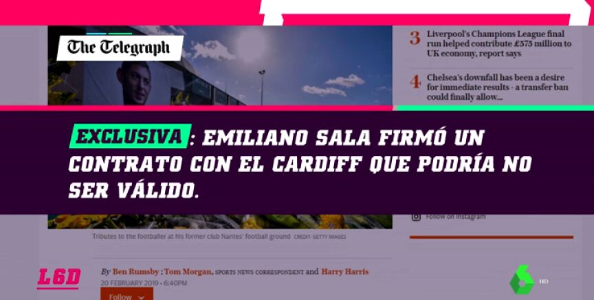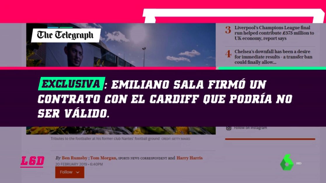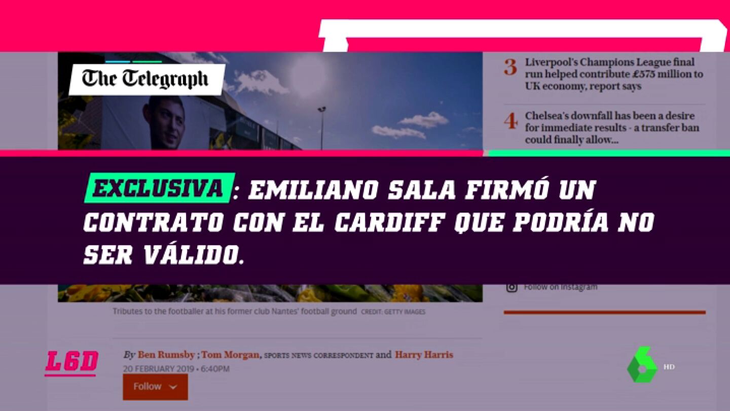 Siguen las discrepancias entre Cardiff y Nantes por el contrato de Emiliano Sala. El diario británico 'The Daily Telegraph' desvela que el contrato que firmó el argentino con su nuevo equipo era potencialmente inválido.