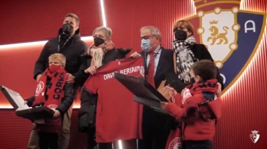 El club entregó una placa conmemorativa a sus familiares, que acudieron con mucha emoción "Desde cualquier lugar del mundo David Beriáin utilizaba su teléfono satélite para preguntar a su hermano Eduardo el resultado de #Osasuna. Ha sido muy emocionante recibir a la familia, con su madre Angelines a la cabeza, para comprobar que El Sadar le recordará para siempre", ha escrito el club en sus redes.
