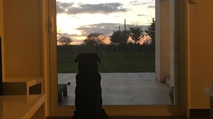 La hermana de Emiliano Sala, Romina, ha publicado en Facebook una foto de la perra, a la puerta de su casa, esperando la llegada de Sala. "Nala también te espera", escribió Romina.