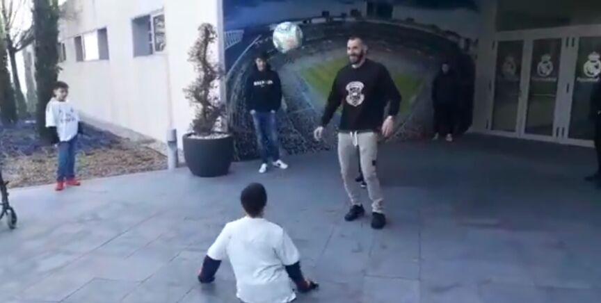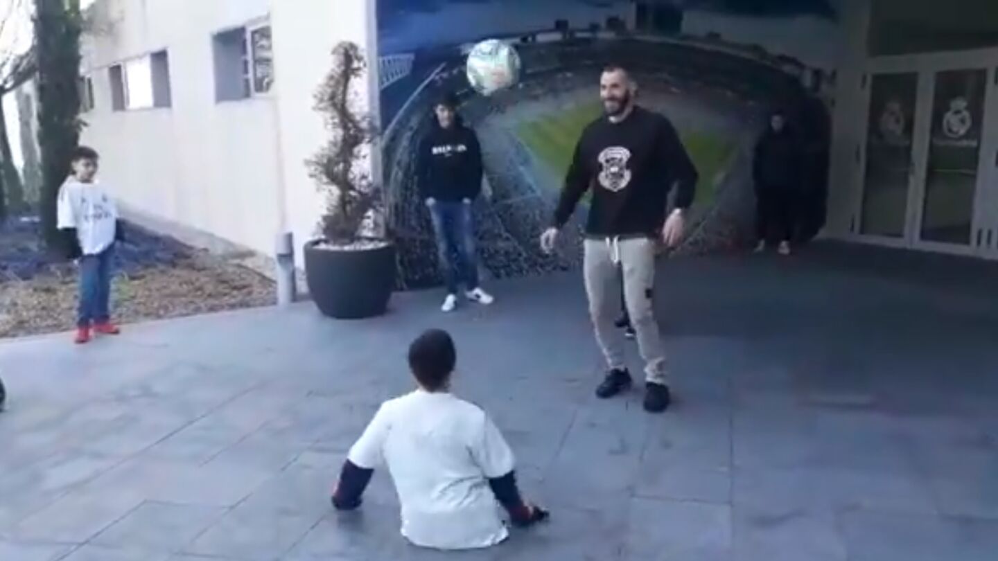 El emotivo momento de Benzema jugando con un niño sin piernas
