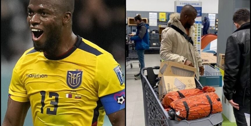 El futbolista ecuatoriano y que milita en la liga turca ha comprado en un centro comercial colchones y material para acampar con el objetivo de ayudar a los damnificados por la catástrofe que sacude a Turquía y a Siria.