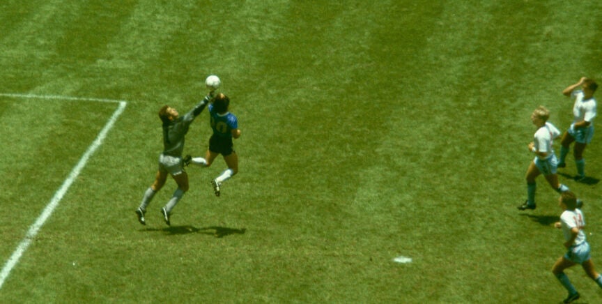 Con aquella camiseta, la del Mundial de México de 1986, Maradona marcó dos de los goles más famosos de la historia de los mundiales contra Inglaterra en los cuartos de final.