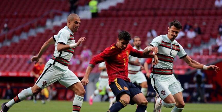 Morata, referencia en ataque, se nubló por completo ante el cuadro portugués. Un larguero en el 91' culminó un partido con fallos dentro del área (incluso se atrevió con un taconazo).