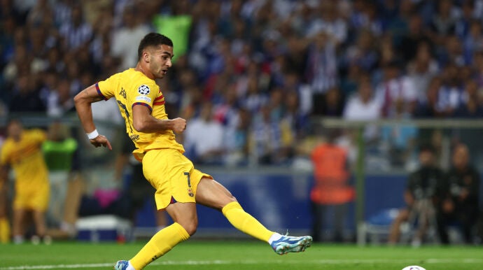 Ferran, que sustituyó a Robert Lewandowski lesionado en la primera mitad, aprovechó su oportunidad. Un mano a mano ante Diogo Costa en el que definió por bajo. Sigue de dulce el '7' del Barça.