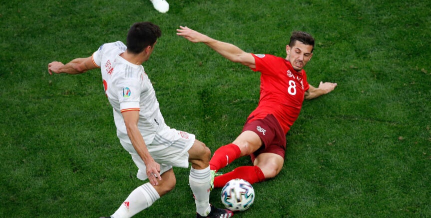 El árbitro entre Suiza y España estuvo marcado por la decisión, en el minuto 77, del trencilla Michael Oliver de sancionar con roja directa una dura entrada de Freuler sobre Gerard Moreno.