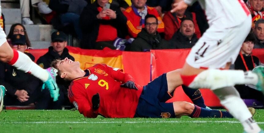 La acción sucedió en el minuto 21. Gavi recibió una falta sin aparente peligrosidad en la frontal derecha del ataque de España. Su rodilla derecha hizo un extraño, e inmediatamente los servicios médicos de la Selección fueron a atender al 9.