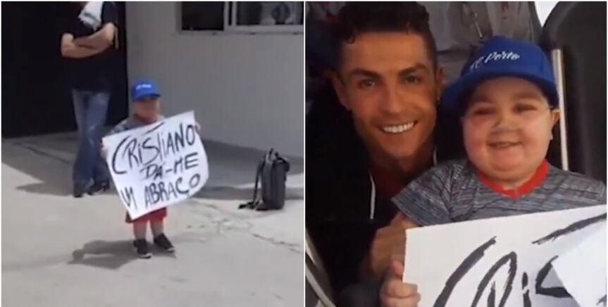 Cristiano Ronaldo protagonizó un emotivo gesto con un niño enfermo. A la salida del entrenamiento con Portugal, un pequeño esperaba junto al autobús del equipo luso con un cartel en el que se podía leer "Cristiano, dame un abrazo".