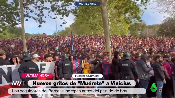 Gritos de "Vinicius muérete" en los aledaños de Montjuïc antes del Barça-PSG