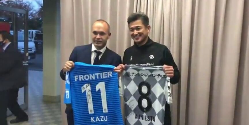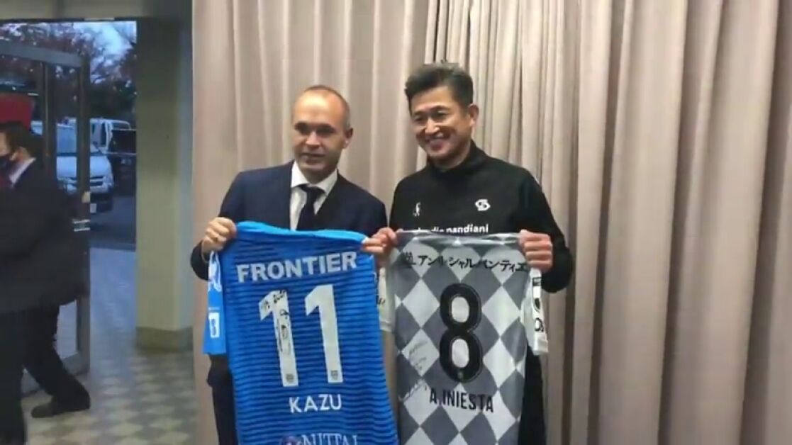 Miura disputó cinco minutos en el partido en cuestión, que acabó con victoria del equipo de Yokohama ante los de Iniesta por 2-1.