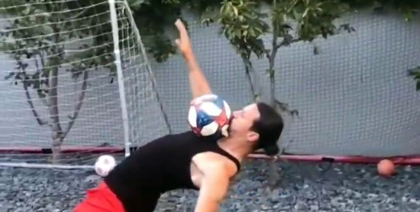 El delantero sueco ha creado un nuevo reto viral, el 'Matrix Challenge', en el cual el objetivo es hacer el mítico movimiento de Neo esquivando las balas echándose hacia atrás, con la dificultad añadida de sostener un balón en el pecho.