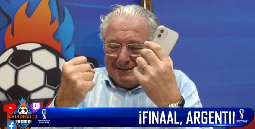 El colaborador de El Chiringuito explotó de emoción al ve a su albiceleste conseguir su tercera estrella y no pudo contener las lágrimas.