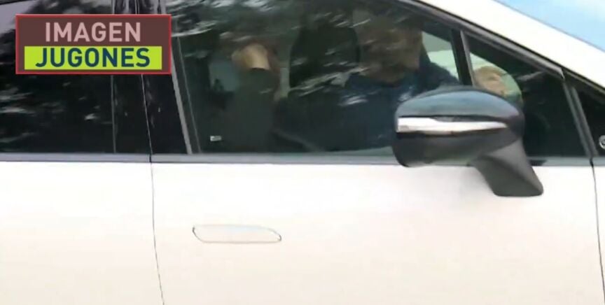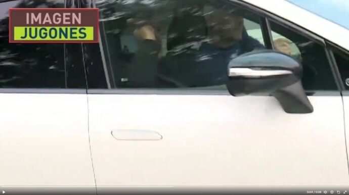 Marc Fuster, periodista de 'Jugones', ha captado el momento en que Laporta, en el asiento de copiloto, llegaba a la sesión del equipo de Xavi.