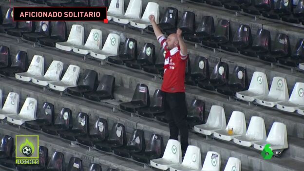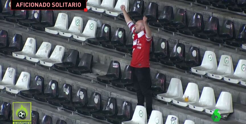 La imagen de la pasión por el fútbol: un aficionado acude a apoyar a su equipo... ¡y es el único!