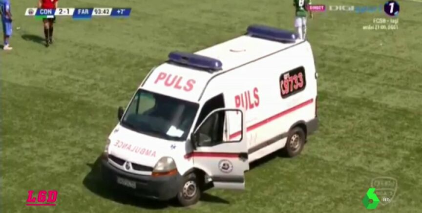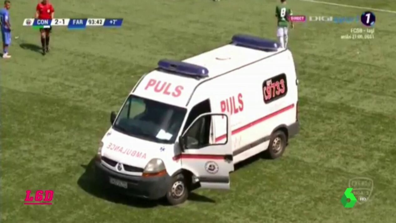 Inaudito: entra la ambulancia para atender a un futbolista lesionado... ¡y desaparece el conductor!