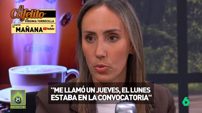 La futbolista española visita 'El Cafelito' de Josep Pedrerol y relata cómo fue su primera convocatoria con la selección española.