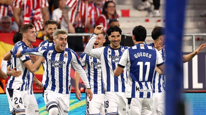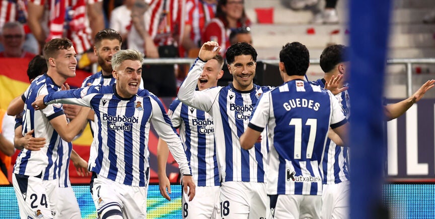 El tanto hizo estallar de alegría a los aficionados de la Real presente en La Cartuja. Un sentimiento más bien contrario fue lo que debieron sentir los colchoneros al ver que tenían que afrontar la final ya con la obligación de remontar para conseguir el título.