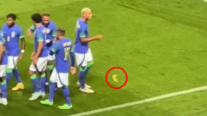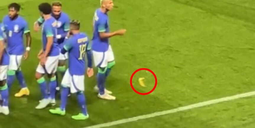 Na comemoração de Richarlison, foi arremessada uma banana em direção ao jogador da seleção brasileira. @s1_livepic.twitter.com/6zjC4OVZto