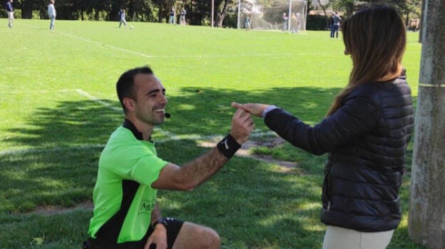 La historia tuvo un final feliz porque la novia del colegiado dijo "sí" a la petición de Rivero. Una insólita petición de matrimonio en el fútbol que se ha hecho viral.